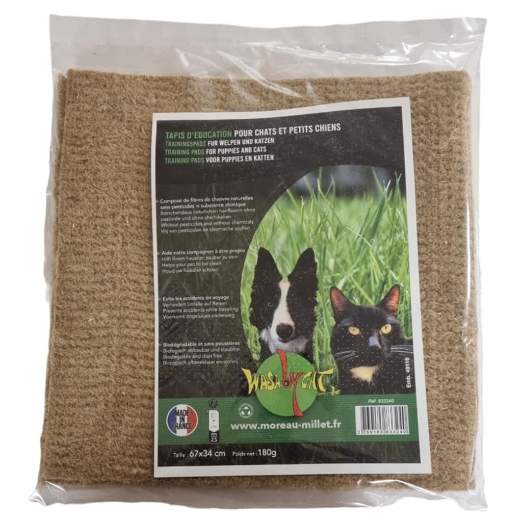 Tapis litière d’éducation en chanvre naturel pour chats. Absorbant, sans produits chimiques, idéal pour apprendre la propreté ou éviter les accidents en intérieur. Doux, biodégradable et facile à placer dans un bac ou panier. Disponible en plusieurs tailles. Fabriqué en France.
